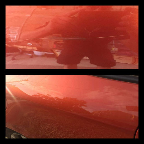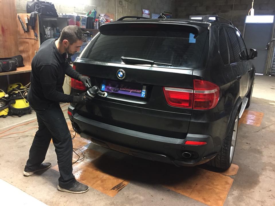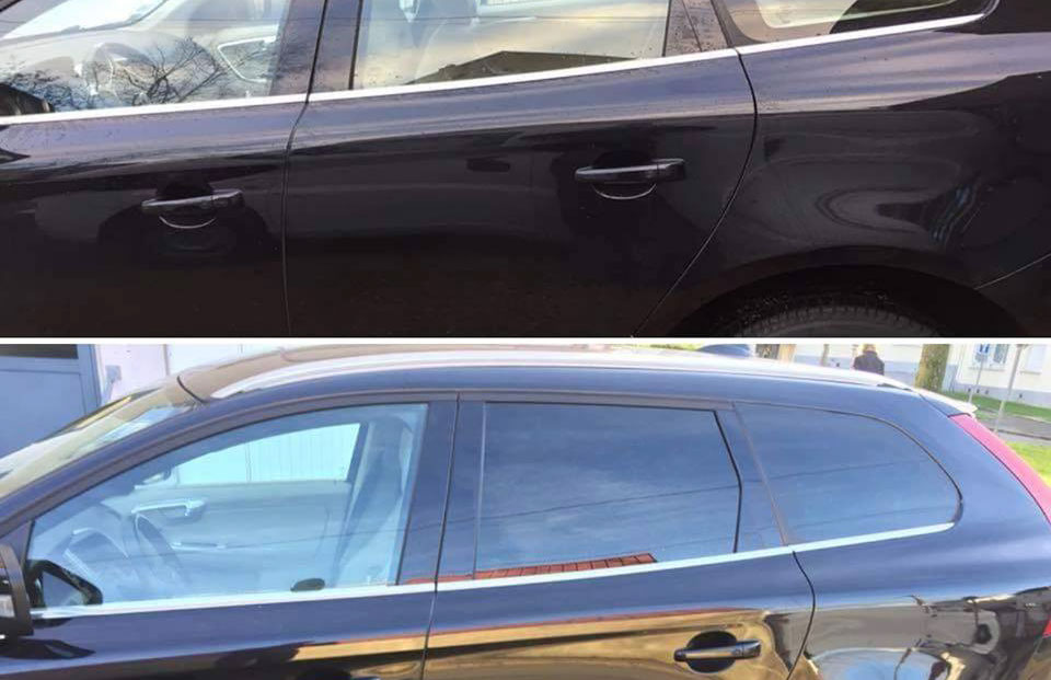 Voici le reflet d'une carrosserie après le lustrage de la peinture